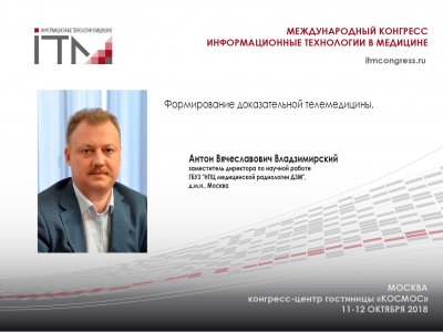Заместитель директора по научной работе ГБУЗ "НПЦ медицинской радиологии ДЗМ", д.м.н. Антон Вячеславович Владзимирвский выступит 12 октябряна #ИТМ2018 с докладом "Формирование доказательной телемедицины."