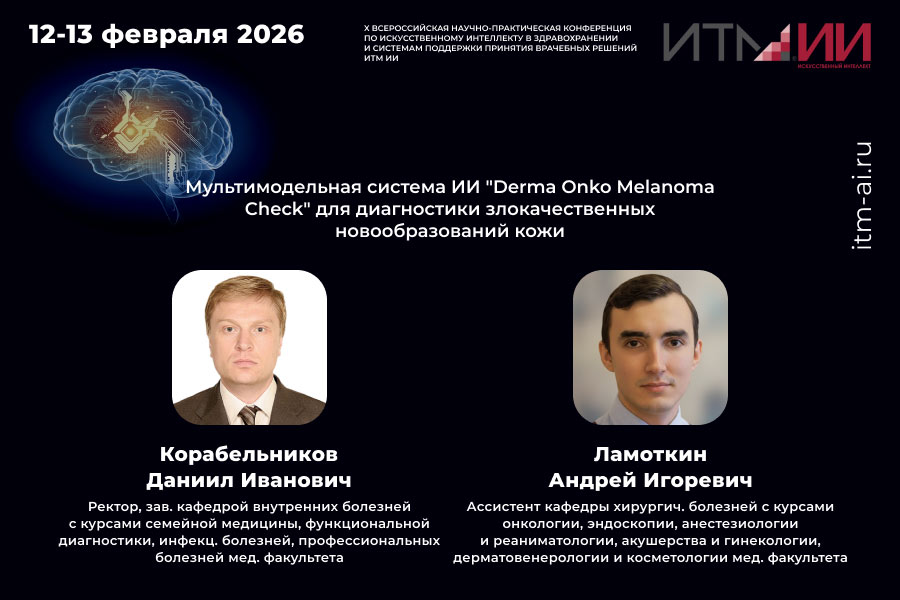 О дебюте нейробиологически обоснованного мультимодельного подхода в дерматоонкологии, о разработке и оценке эффективности программы «Derma Onko Melanoma Check» на «ИТМ ИИ» расскажут Даниил Корабельников и Андрей Ламоткин.