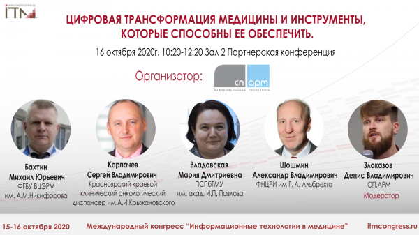 #ИТМ2020 16 октября 10:20(мск.) ЦИФРОВАЯ ТРАНСФОРМАЦИЯ МЕДИЦИНЫ И ИНСТРУМЕНТЫ, КОТОРЫЕ СПОСОБНЫ ЕЕ ОБЕСПЕЧИТЬ.