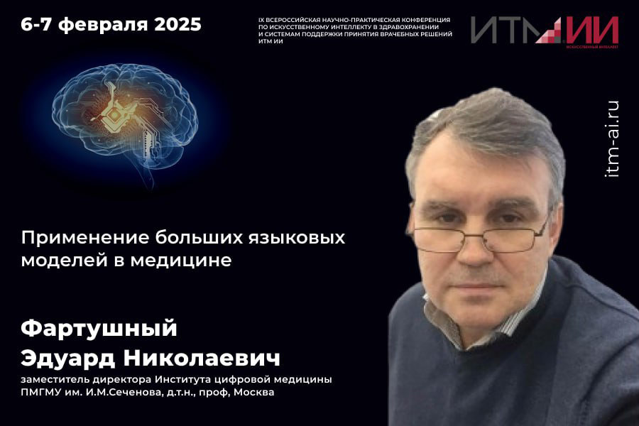 7 февраля на площадке ИТМ ИИ пройдет круглый стол «Применение больших языковых моделей в медицине» (зал «Этаж», начало в 13:00). Сомодератор круглого стола заместитель директора Института цифровой медицины ПМГМУ им. И.М. Сеченова, д.т.н., профессор Эдуард Николаевич Фартушный расскажет об эволюции LLM-моделей: от chat к предметным ассистентам и операторам решения специализированных задач, о том, как китайские модели подорвали гегемонию американских), а также об отечественных open source моделях (с полным доступом) высокого качества. Из доклада можно будет узнать, как запустить одну из таких моделей и как использовать на самом обычном ноутбуке). Докладчик представит опыт специалистов Института цифровой медицины.