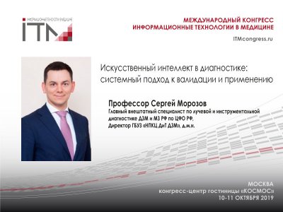 Применение ИИ в медицине потенциально может повысить качество и безопасность медицинской помощи, вместе с тем использование интеллектуальных технологий сопряжено с рисками. Для выявления и минимизации таких рисков требуется доказательный подход к оценке точности и значимости ИИ. На основе систематизации мирового опыта и результатов собственной работы по тестированию алгоритмов разработана методика клинических испытаний ИИ для сферы лучевой диагностики. Методика стала основой программы внедрения алгоритмов в Единый радиологический информационный сервис (ЕРИС) Москвы.Секция «Использование технологий искусственного интеллекта для достижения ключевых показателей Национального проекта "Здравоохранение"» 10 октября, с 16.00 в зале «Сатурн» на международном конгрессе #ИТМ2019