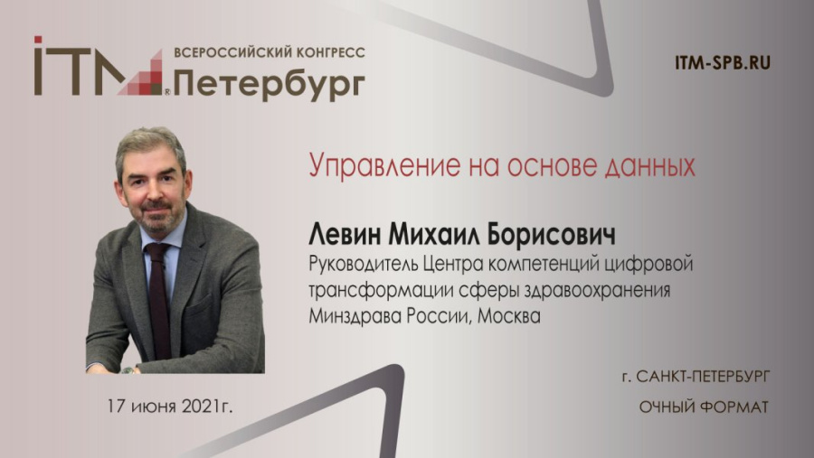 Руководитель Центра компетенций цифровой трансформации сферы здравоохранения Минздрава России Михаил Левин планирует принять участие в работе Всероссийского конгресса #ИТМПетербург https://itm-spb.ru/ и выступить с докладом в рамках Международной научно-практической конференции "МЕДИЦИНСКАЯ ОРГАНИЗАЦИЯ НОВОГО ВРЕМЕНИ. ЛУЧШИЕ СТАНДАРТЫ И ПРАКТИКИ ЦИФРОВОЙ ТРАНСФОРМАЦИИ."