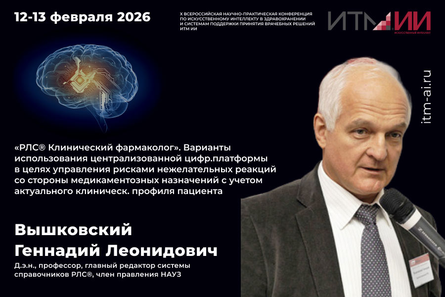 Варианты использования централизованной цифровой платформы «РЛС Клинический фармаколог» в целях управления рисками нежелательных реакций со стороны медикаментозных назначений с учетом актуального клинического профиля пациента на «ИТМ ИИ» представит генеральный директор, проф., главный редактор системы справочников РЛС Геннадий Вышковский.
