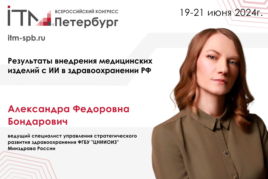 Результаты масштабной работы на «ИТМ Петербург» представит ведущий специалист управления стратегического развития здравоохранения ФГБУ «ЦНИИОИЗ» Минздрава России Александра Федоровна Бондарович.