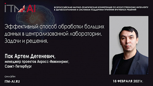 Эффективный способ обработки больших данных в централизованной лаборатории. Задачи и решения — онлайн доклад от Лаборатории Акросс-Инжиниринг на конференции ITM-AI.ru, 18 февраля 2021.