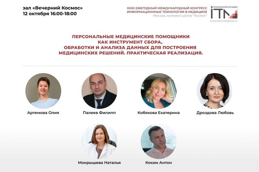 В рамках деловой программы #ИТМ2023 12 октября с 16:00 до 18:00 в зале «Вечерний Космос» состоится секционное заседание «Персональные медицинские помощники как инструмент сбора, обработки и анализа данных для построения медицинских решений. практическая реализация».