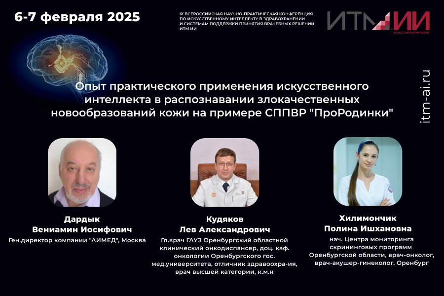 В первый день работы ИТМ ИИ в рамках секционного заседания будет представлен опыт практического применения искусственного интеллекта в распознавании злокачественных новообразований кожи на примере СППВР «ПроРодинки». В докладе анализируются различные аналитические, статистические и социальные аспекты использования приложений и продуктов «ПроРодинки» на протяжении пяти лет. Доклад даст ответы на вопросы: «Молодеет ли меланома? Можно ли увеличить активное выявление меланомы с помощью искусственного интеллекта? Где наиболее востребованы методы дистанционной диагностики новообразований? Какая часть пациентов с подозрением на ЗНО обращаются к онкологу?»