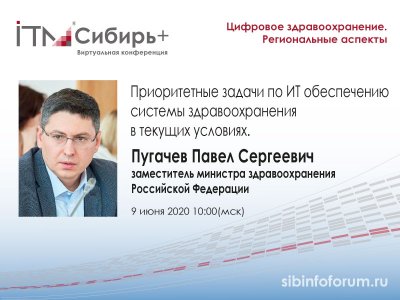 Заместитель министра здравоохранения Российской Федерации Павел Сергеевич Пугачев 9 июня 2020 выступил с установочным докладом на Виртуальной конференции #ИТМСибирь+ (Цифровое здравоохранение) https://sibinfoforum.ru/. Видео прикреплено.Основные тезисы: