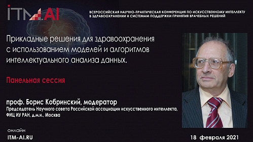 18 февраля профессор Борис Кобринский выступит сомодератором панельной онлайн сессии по прикладным решениям для здравоохранения с использованием моделей и алгоритмов интеллектуального анализа данных.