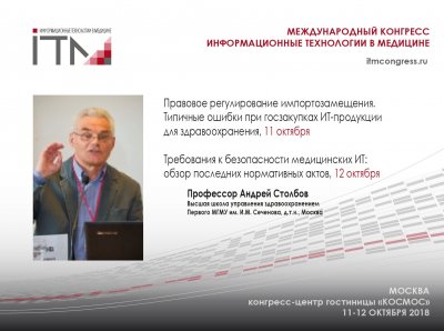 15:30 -17:30, зал «Сатурн», Секционное заседание № 7 "Нормативное регулирование применения ИТ в здравоохранении. Госрегистрация медицинского ПО. Обеспечение кибербезопасности медицинской деятельности. "