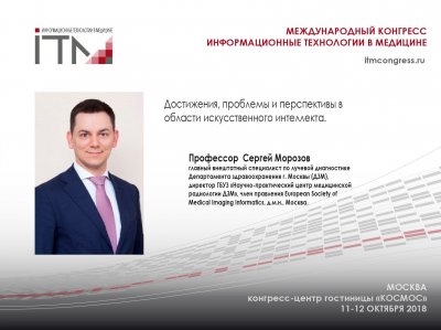 12 октября на #ИТМ2018 профессор Сергей Морозов с докладом о достижениях, проблемах и перспективах в области искусственного интеллекта и эффективности указанных приложений в практическом здравоохранении.