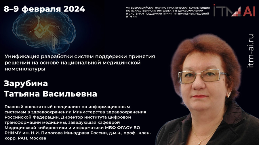 Заведующая кафедрой медицинской кибернетики и информатики МБФ ФГАОУ ВО РНИМУ им. Н.И. Пирогова Минздрава России, профессор Татьяна Васильевна Зарубина в своем выступлении на конференции ITM-AI уделит внимание такой актуальнейшей проблеме цифровой трансформации медицины, как отсутствие единой медицинской терминологии и общепринятой формализации.