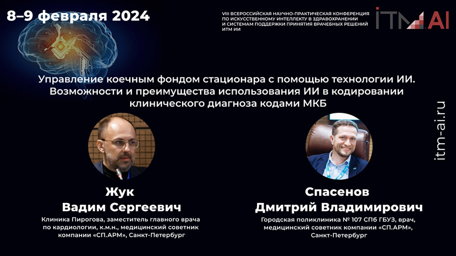 Кодирование основного диагноза случая по МКБ требует использования ресурса врачей-статистиков, поскольку ошибки на этапе работы врача-клинициста могут приводить к искажению статистической отчетности. Как управлять коечным фондом стационара и осуществлять кодирование клинического диагноза в кодах МКБ-10 с использованием СППВР на основе машинного обучения, 8 февраля на площадке конференции ITM-AI расскажут медицинские советники компании СП.АРМ Вадим Сергеевич Жук и Дмитрий Владимирович Спасенов.
